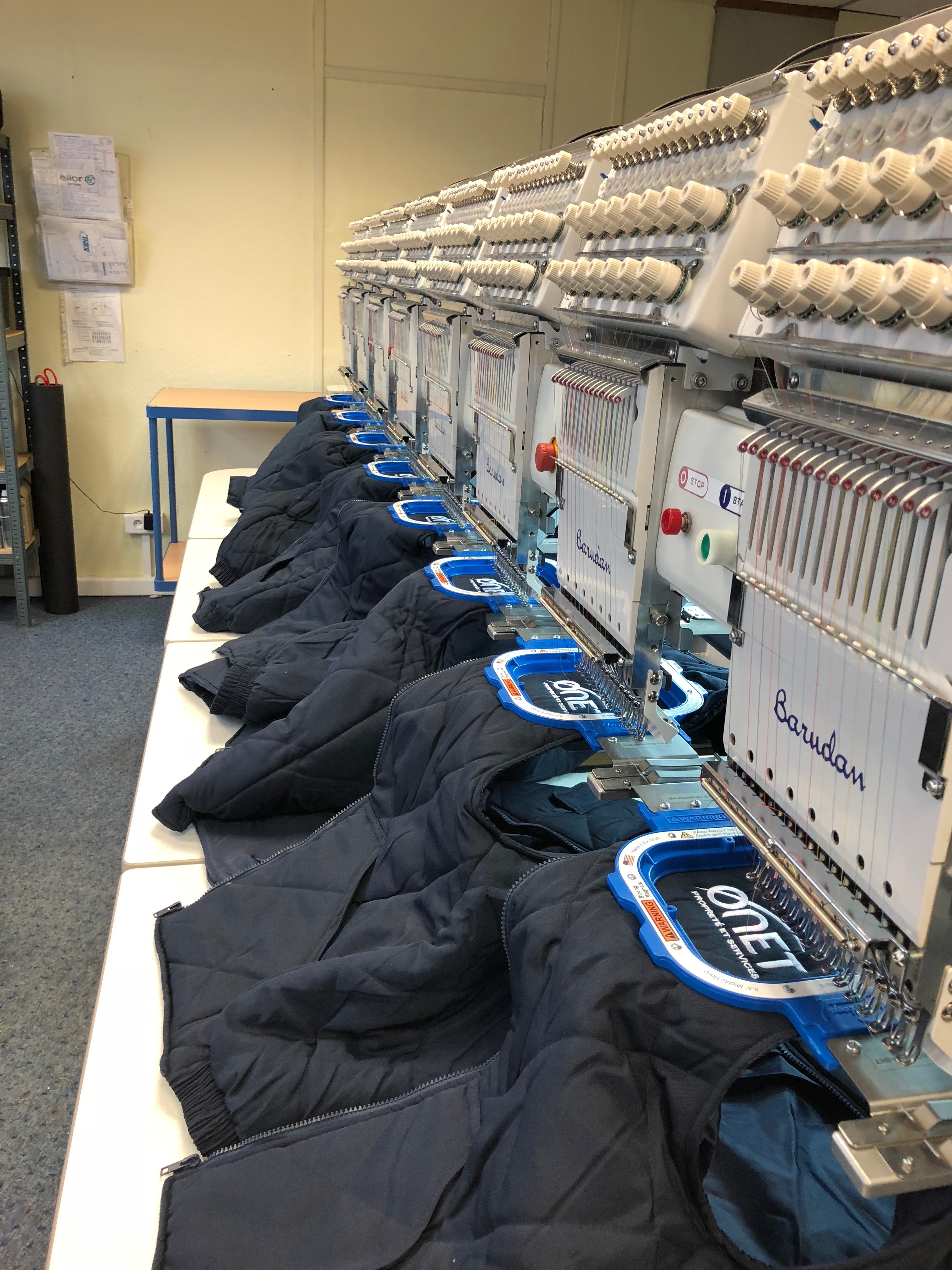 Notre atelier de marquage intégré à notre plateforme logistique est doté de machines à broder multi-têtes de dernière génération, d'une imprimante grande largeur permettant soit d'imprimer vos logos avec des encres écologiques ou bien de découper des lettres ou logos qui seront posés grâce à des presses à thermocoller ce qui donne l'agilité et la flexibilité dont vous avez souvent besoin.